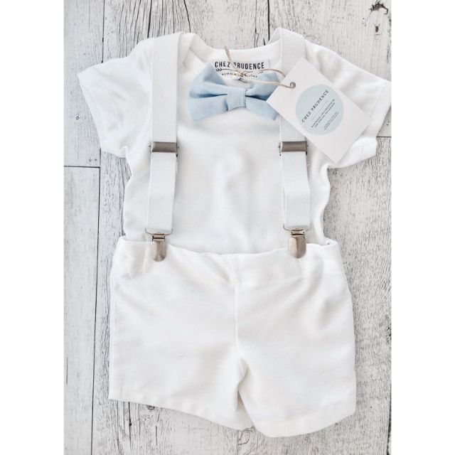Mark - White and Silver Christening Dress Set for Baby Boy 161700. Catholic Baptism Kit in an Our Lady of Guadalupe Wooden Box with Towel Candle Rosary and Shell for Baby Boys and Girls. Adam - Blue White Christening Romper set for Baby Boy 365700.